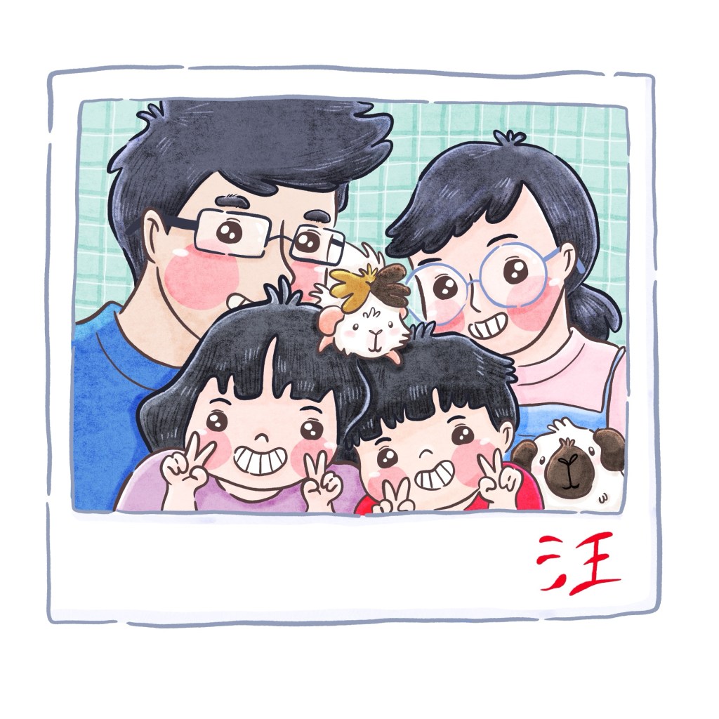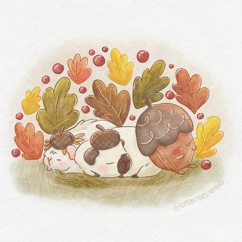 I also have a soft spot for Guinea pigs. I have two of my own, Popcorn and Nugget. Popcorn left us at the end of July 2025, but I’ve continued to remember him through my illustrations.